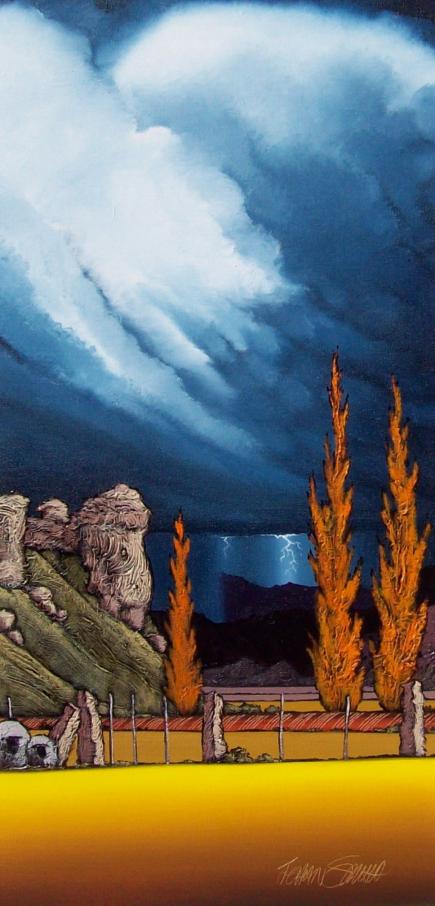 Johan has developed a very distinctive style. Thin application of oil resembles airbrush work which contrasts well with areas of thick impasto. Scratching through the paint creates perspective and texture.