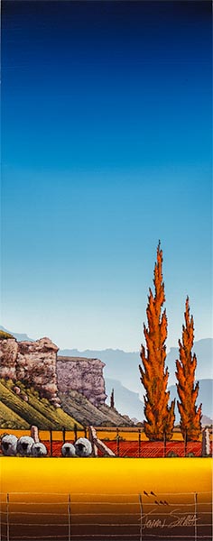 Johan has developed a very distinctive style. Thin application of oil resembles airbrush work which contrasts well with areas of thick impasto. Scratching through the paint creates perspective and texture.