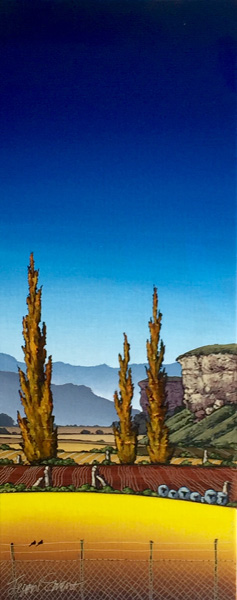 Johan has developed a very distinctive style. Thin application of oil resembles airbrush work which contrasts well with areas of thick impasto. Scratching through the paint creates perspective and texture.