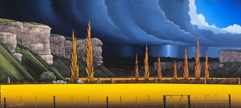 Johan has developed a very distinctive style. Thin application of oil resembles airbrush work which contrasts well with areas of thick impasto. Scratching through the paint creates perspective and texture.