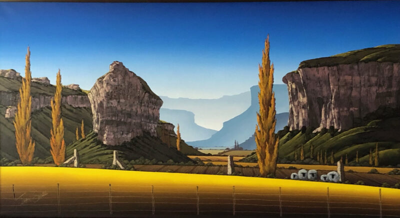 Johan has developed a very distinctive style. Thin application of oil resembles airbrush work which contrasts well with areas of thick impasto. Scratching through the paint creates perspective and texture.